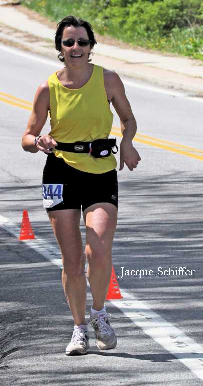 The first place woman was Jacque Schiffer who seemed delighted with her 4:58 over Sybil's hills. In fourth place among the women was Emmy Stocker who seemingly runs just about everywhere and can't turn down a marathon or ultra. Like Mike Arnstein the poor gal had done Boston on Monday but was strong enough (like Steve Sweeney among the men) to take the female Masters award.